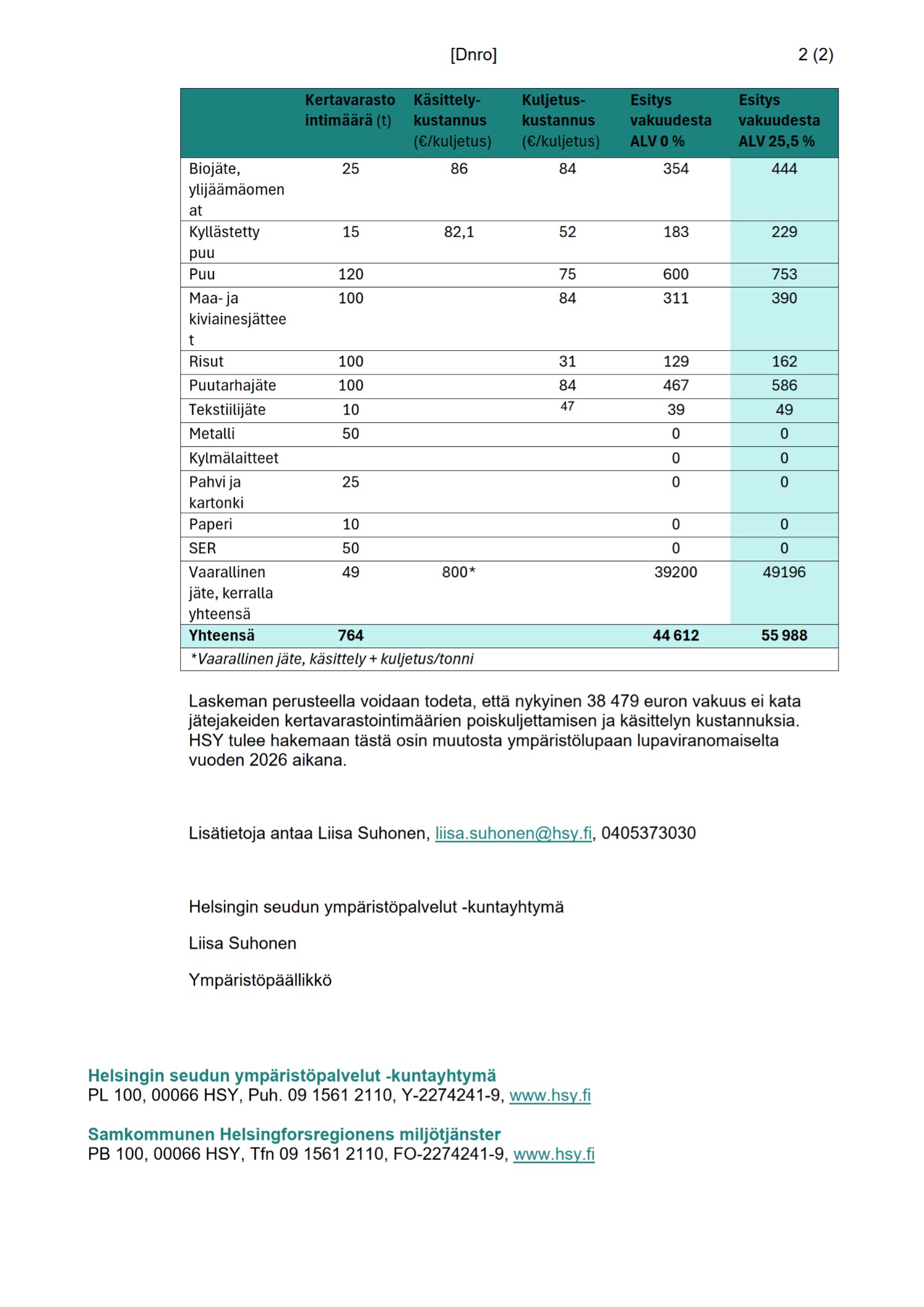 Liite 3 Selvitys vakuuden vastaavuudesta Kivikon jätepalvelukeskuksessa