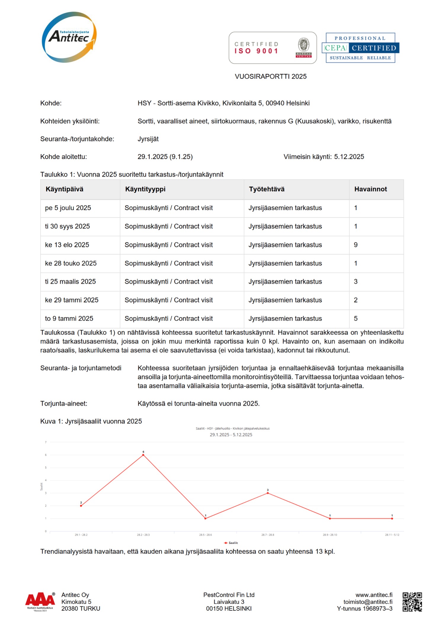 Liite 2 Kivikon jätepalvelukeskuksen hygieniaraportti vuodelta 2025, Antitec Oy